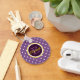 O padrão de bolinhas brancas funciona como sobreposição para que a cor de fundo roxa possa ser personalizada. Clique em personalizar ainda mais para alterar a cor e/ou o estilo da fonte do nome e do monograma.