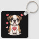 Uma ilustração encantadora de um filhote fofo com olhos expressivos, com sotaques cardíacos e uma doce mensagem.