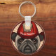 Bombeiro Pug chaveiro por ArtMuvz Illustration. Roupa de bombeiro, presentes de bombeiro, equipamento de bombeiros. Para personalizar, adicione seu nome ou adicione texto. Personalize este chaveiro de bombeiro para torná-lo exclusivo seu ou para oferecer como presente personalizado