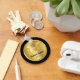 Este design de ano de classe de graduação apresenta um boné de formatura de gradiente dourado desenhado sobre um gradiente de tons dourados de coordenação e fundo circular preto. Design por Holiday Hearts Design (direitos reservados).