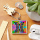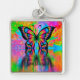 Borboleta Psicodélica Grande Cor de Cheio Premium Quadrado, Impressão com Chaveiro de sangramento de cheio Silver Coloração de Metal & Anel UV Resistente e à Prova de Água Adicionar Fotos, Trabalho de arte e Texto Sem Ordem mínima