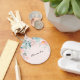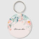 Uma corrente chave com uma elegante borda floral. Flores e folhas cor-de-rosa e verde.
