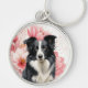 Chaveiro Border Collie Dog and Bold Pink Lilies