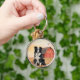 A key chain for dog lovers with a Border Collie dog sitting in a field at the ranch with a red barn and birds in flight in the background for a great country western cowboy theme.
