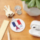 Patriótico chaveiro do Botão BASTILLE DAY francês, com o contorno do mapa combinado com a bandeira TRICOLORE da FRANÇA. À direita está o lema francês - Liberté, Egalité, Fraternité - e abaixo dele está escrito Joyeux Quatorze Juillet (iluminado. Feliz 14 julho). À esquerda há um gráfico da Torre Eiffel (turnê Eiffel). A saudação neste chaveiro de Dia da Bastilha é PERSONALIZÁVEL, de modo que você pode substituí-la pela sua saudação preferida (por exemplo, Feliz Dia da Bastilha, Vive la France, etc.), adicionar seu(s) nome(s) ou excluir. Presente ideal para bolsas de favor.