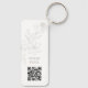 Simples e elegante. As cadeias de teclas mínimas do chic apresentam um delicado elemento floral ao lado de uma fonte contemporânea em formato claro e código QR para mídia social ou endereço do site.