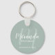 Adicione um toque pessoal ao seu casamento com chaveiro de madrinha personalizada. Este chaveiro apresenta o nome personalizado da madrinha em estilo de fonte branco moderno de script e monograma em estilo de fonte verde moderno de script sage como fundo com título e data de casamento em estilo de fonte branco moderno de sans serif em fundo verde sage. Também perfeito para a madrinha de casamento, mãe da noiva e muito mais.