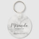 Adicione um toque pessoal ao seu casamento com chaveiro de madrinha personalizada. Este chaveiro apresenta o nome personalizado da dama de honra no estilo de fonte moderna da cinza com o título e a data de casamento no estilo de fonte sans moderno da cinza em fundo de mármore branco. Também perfeito para a madrinha de casamento, mãe da noiva e muito mais. Observe que os detalhes do mármore são simulados no trabalho de arte. Não será utilizado nenhum mármore real no fazer deste produto.