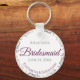 Estas chaveiros são desenhadas para oferecer como favores às damas de honra na sua festa de casamento. Eles apresentam um design simples, mas elegante, com um fundo branco, magenta ou roxo do chassis e texto de Cinza, e uma borda floral de folha de papel prateada. Uma maneira perfeita de obrigado das damas de honra por fazerem parte do vosso dia especial!