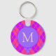 Chaveiro Bright Pink and Blue Argyle Pattern Monogram