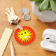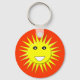 Este brilhante chaveiro de sol amarelo sorridente é garantido para fazer você sorrir mesmo nos dias mais miseráveis. Está sobre fundo quente vermelho e tem uma boca sorridente branca e grandes olhos pretos com pupilas brancas.