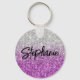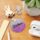 Crie o seu próprio botão, estilo redondo chaveiro para ela apresentar uma cinza prateada suja de luxo e um gradiente de brilho roxo. Adicione um monograma atrás do nome dado para criar seu próprio design monograma personalizado. O texto personalizado apresenta um moderno script de caligrafia do estilo do pincel de letras escritas à mão. Personalize o estilo de texto e fonte neste design. Para nomes mais curtos, há espaço para aumentar o tamanho da fonte. A alegre arte digital será impressão como uma foto em seu presente.