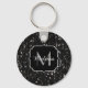 O brilho preto e branco brilha no chaveiro monograma. Personalize a cadeia de chave Acessória com brilho com seu nome e nome iniciais. Brilhantes brilhos brilhantes de preto e branco. Foto de faíscas não é uma verdadeira falha!