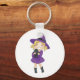 Uma bruxa menina segurando em uma boneca vodu. Esta design parece realmente eficaz nestes Chaveiro