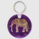 Belo elefante de ouro tribal desenhado a mão num fundo pincelado roxo.