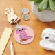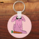 Um adorável coelho rosa senta-se infelizmente com seus grandes olhos brilhantes olhando para você. As orelhas flutuaram e as patas segurando de uma forma lamentável. Completado por uma saborosa cenoura. O Bunny ama-te.