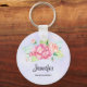 Um chaveiro com uma bela e elegante aquarela criada buquê floral. Flores cor-de-rosa cercadas por folhagem verde-clara. Púrpura de cor d'água.