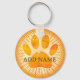 Estilo de desenho animado bonitinho, pata de cão e raios solares com efeito aflitivo. Meio tom de aquarela no fundo. Chaveiros personalizados. Editar nome para personalizar. Ideia de presente para amantes de cães.