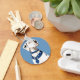 Ilustração estilizada de um cão Dalmático vestindo um colar azul contra um fundo azul comum, destacando sua aparência distinta e comportamento amigável.