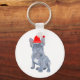 Esta chaveiro de Natal incomum mostra o meu retrato de um filhote de cachorrinho francês giro, vestindo um chapéu vermelho de Papai Noel. Perfeito como um pequeno engarrafador ou presente.