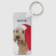 Adorável chaveiro com uma fotografia do seu melhor amigo o cão. Coloque o nome dele do outro lado