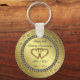 Um Design da Digitalbcon Images que apresenta um tema de ouro e cor preta com uma variedade de imagens, formas, padrões, estilos e fontes personalizadas nesta cadeia de teclas de "Aniversário do Casamento do Ouro", de tipo único. Este design elegante e atraente faz o símbolo ideal para todos os convidados do Aniversário na sua ocasião especial e vem com letras de texto personalizáveis para comemorar o seu próprio evento especial.