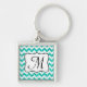 Glitter Teal Moderno Chevron Zig Zag Stripe Monograma Cadeia-Chave Inicial
