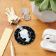 Um retrato bonito ao estilo camameo, quando você olha mais de perto você pode ver o crânio da adorável senhora esboçado em azul.