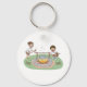 Uma fogueira com crianças à sua volta. Esta design parece realmente eficaz nestes Chaveiro