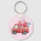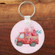 Corrente chave com um caminhão de cor vermelha. Corações de carregando e flores no fundo. Eu te amo, escrito do lado. Impressionante e adorável. Rosa claro de fundo padronizado.