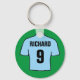 Presente para um fã de futebol. Um anel chave com uma camisa de futebol em azul-claro. Personalize com sua escolha de nome e número.