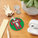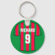 Presente para um fã de futebol. Keyring com uma camisa de futebol em faixas vermelhas e verdes. Personalize com sua escolha de nome e número.