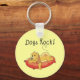 Um cão marrom bonito relaxa feliz em sua cama do filhote de cachorro e o texto preto lê "cães balança!" em nossos cães balance t-shirt, canecas, mousepads, botões, cartões, e mais!