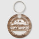 Um simples, mas na moda, chaveiro com a frase "Campos Felizes". Personalize com seu nome de família. Mostrado com um fundo de madeira rústico, perfeito para segurar o seu campista ou as chaves da casa.
