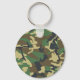 Chaveiro com camuflagem de padrão Woodland, também conhecida como padrão folha.