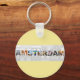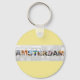 Mostre a todos o seu amor por Amsterdã nos Países Baixos com este chaveiro único. A colagem colorida das visões da cidade de Amsterdã é imposta sobre uma fotografia em preto e branco de casas ao longo de um canal. Você pode alterar a cor do plano de fundo para ajustado sua preferência.