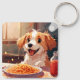 Um Cachorro branco fluffy, aplicado com manchas castanhas, mergulha de cabeça numa montanha de esparguete. O molho de tomate espalha-se pelo pelo e a toalha branca numa deliciosa bagunça. Renderizado em uma composição espantosa e masteramente equilibrada (taxa de ouro do pensamento!), a ilustração evoca o detalhado, mas caprichoso