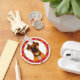 Ilustração admirável ao estilo cartoon de um cão com olhos brilhantes, vestindo uma coleira e uma corrente, colocada contra um fundo circular colorido.