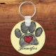 Impressão de pata de cão e aquarela cardíaca em vermelho, preto e cinza. Correntes-chave personalizadas para homens e mulheres. Versão de fundo amarela. Editar nome para personalizar. Ideia de presente para amantes de cães.