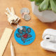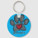 Impressão de pata de cão e aquarela cardíaca em vermelho, preto e cinza. Correntes-chave personalizadas para homens e mulheres. Versão de fundo azul. Editar nome para personalizar. Ideia de presente para amantes de cães.