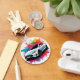 Um carro elétrico moderno, ilustrado digitalmente, retratado contra uma vibrante abertura de tinta multicolorido, combinando inovação e arte.