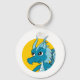 Chaveiro com ilustração da cabeça de um pequeno dragão azul giro em círculo amarelo, fantasia fofa / design de conto de fadas para crianças por Maxi Harmony,