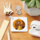 Chaveiro com ilustração da cabeça de um pequeno dragão laranja giro no círculo laranja, fantasia fofa / design de conto de fadas para crianças por Maxi Harmony,