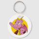 Chaveiro com ilustração da cabeça de um pequeno dragão voador rosa giro, em círculo amarelo, fantasia fofa / design de conto de fadas para crianças por Maxi Harmony