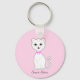 Chaveiro Cartoon de Gatinho Branco e Bonito, em Rosas claro