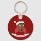 Chaveiro com uma ilustração de feliz sorriso de um homem afro-americano com o chapéu de Papai Noel; com um texto editável modelo; design de Natal com fundo vermelho