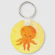 Um polvo de desenho laranja giro. Versão pintada de polvo em fundo angustiado. Cadeias de chave personalizadas. Ideia de presente para crianças.