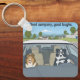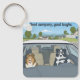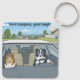 Hit the road with a smile with this keychain featuring a cartoon style image of 2 furry friends going on a road trip.