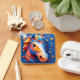 Uma ilustração encantadora de um cavalo branco cercado por um fundo azul estrelado, criando um tema mágico e cerâmico. O design é perfeito para os visuais, narrativas ou trabalho de arte.