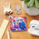 Casal de anime bonito cercado por corações e flores. As cores utilizadas são vermelho, roxo e azul. Fofo para Dia de os namorados ou aniversário ou qualquer ocasião romântica. Cadeia de chave personalizada.